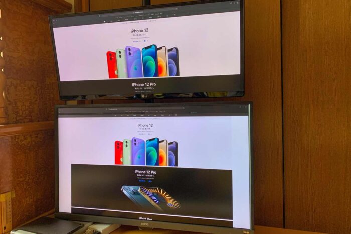 画面サイズの違いは1cm程度なので縦に並べた場合は、思ったよりも違和感は少ない。