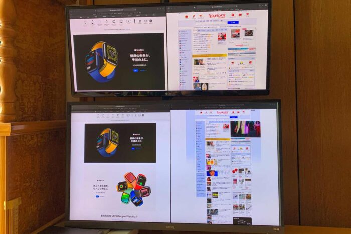 このままでも、複数のディスクトップ画面を移動しながら作業ができるのですが、切り替えて使用するよりも、広く見渡せた方が使いやすいと考えました。