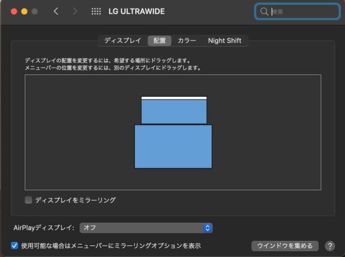 モニターの位置をドラッグして使いやすい配置に移動する。