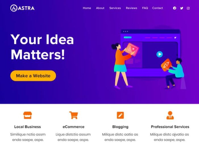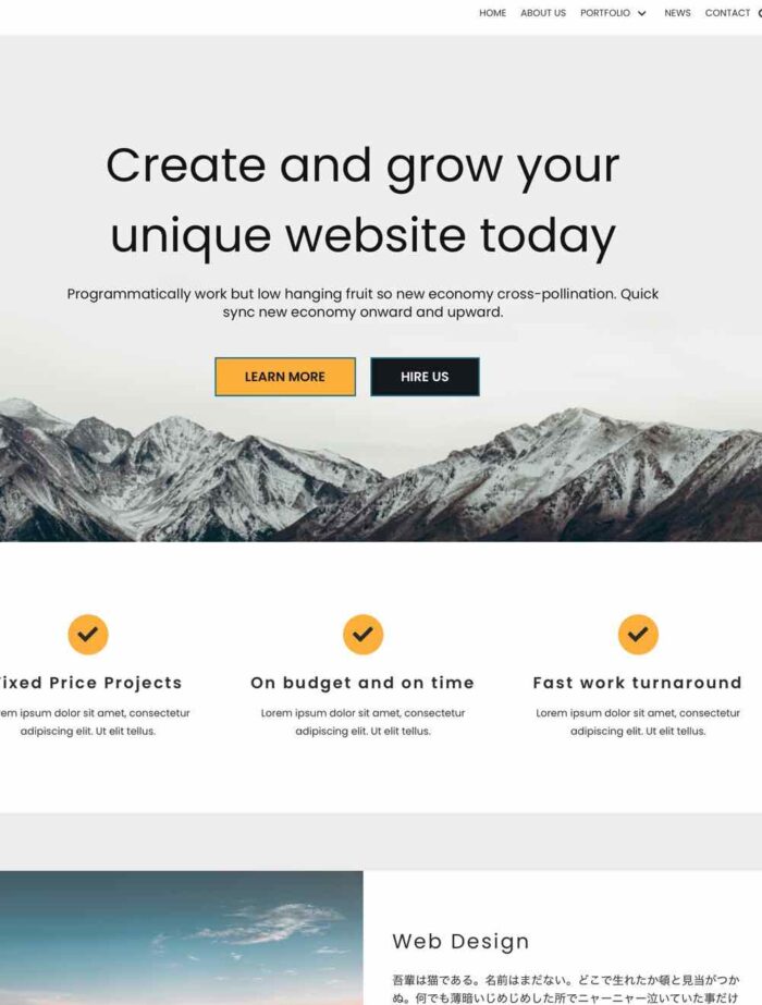 注意:すでに構築されたWordpressサイトにこのNeveテーマを適用した場合、テンプレートは固定ページとフォントやヘッダー、フッターのデザインのみです。