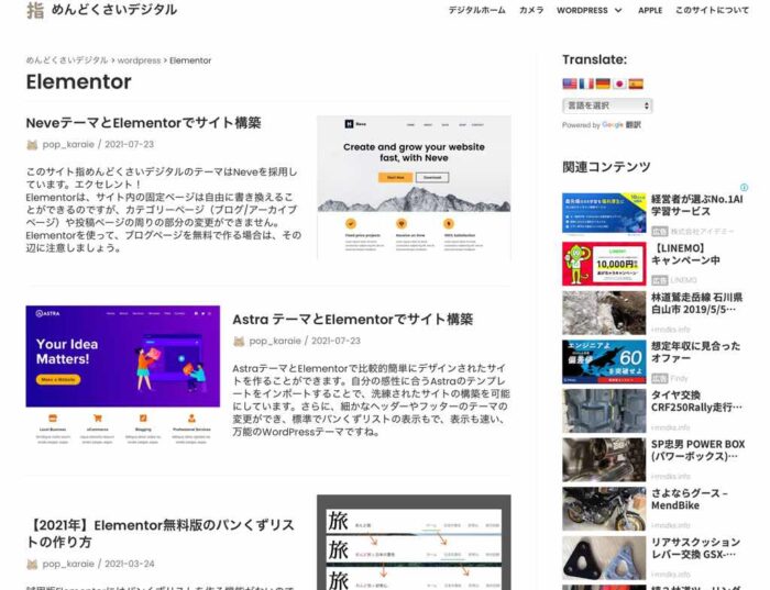 しかし、カテゴリー分類をするようなサイトには、無料Elementor+Hello+Elementor Header & Footer Builderでは、随分と工夫をしないとうまく動作しないわけでした。