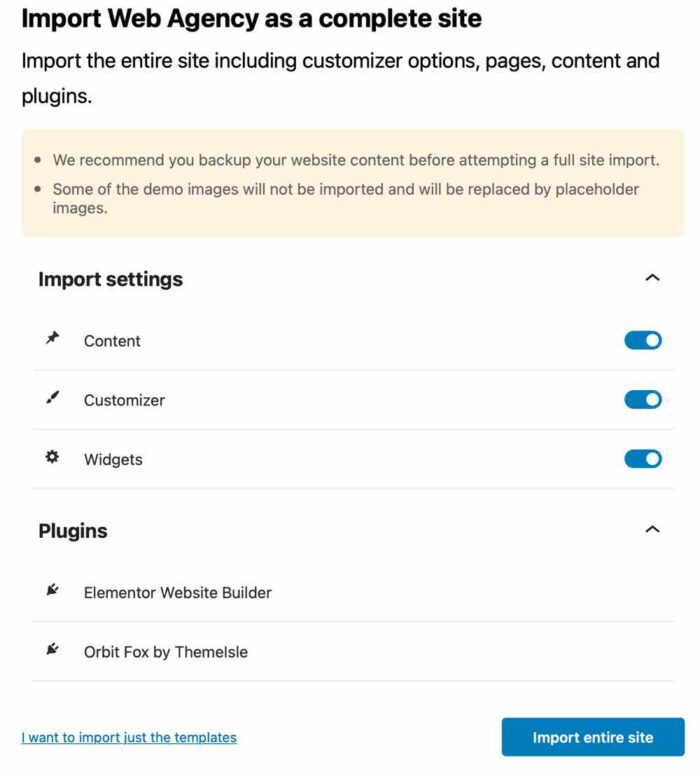Web Agencyを選択して、「Import」しました。(Free版のテンプレートの中でWeb Agencyがページが充実している)