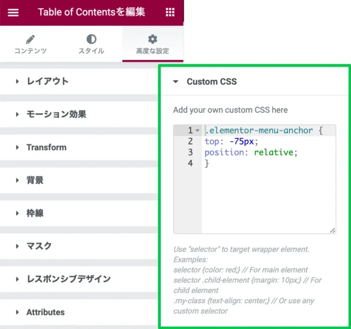 Table of Contents の編集 内の Custom CSS に記述するだけです.