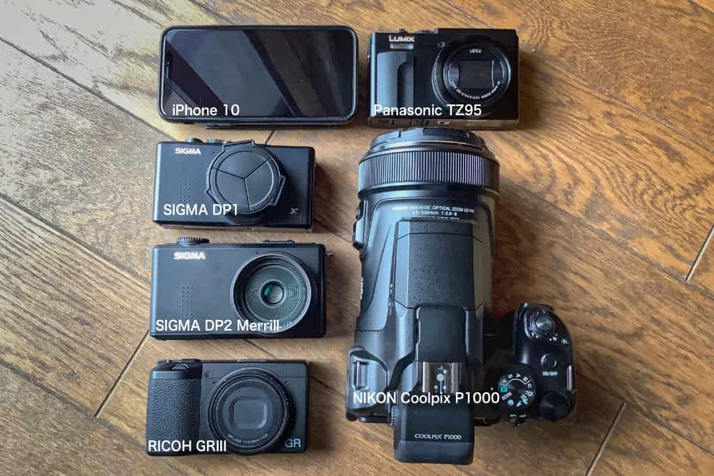 今回は、スマートフォン代表 iPhone X、FOVEON センサーのDP1 , DP2Merrill、望遠レンズと 1/2.3 型センサー搭載の Nikon P1000 , Panasonic Lumix TZ95、スナップシューター RICOH GR3 を使って写真の写り方の比較をしてみました.