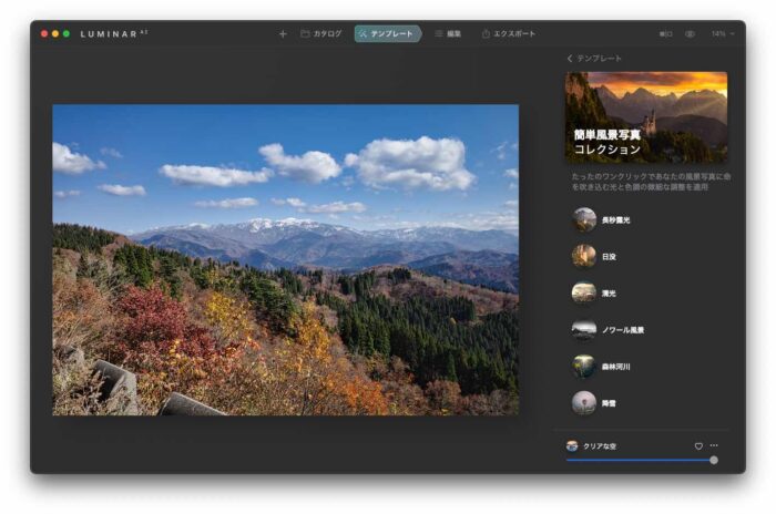 - Luminar AI 「風景コレクション」の「もっとはっきり」
